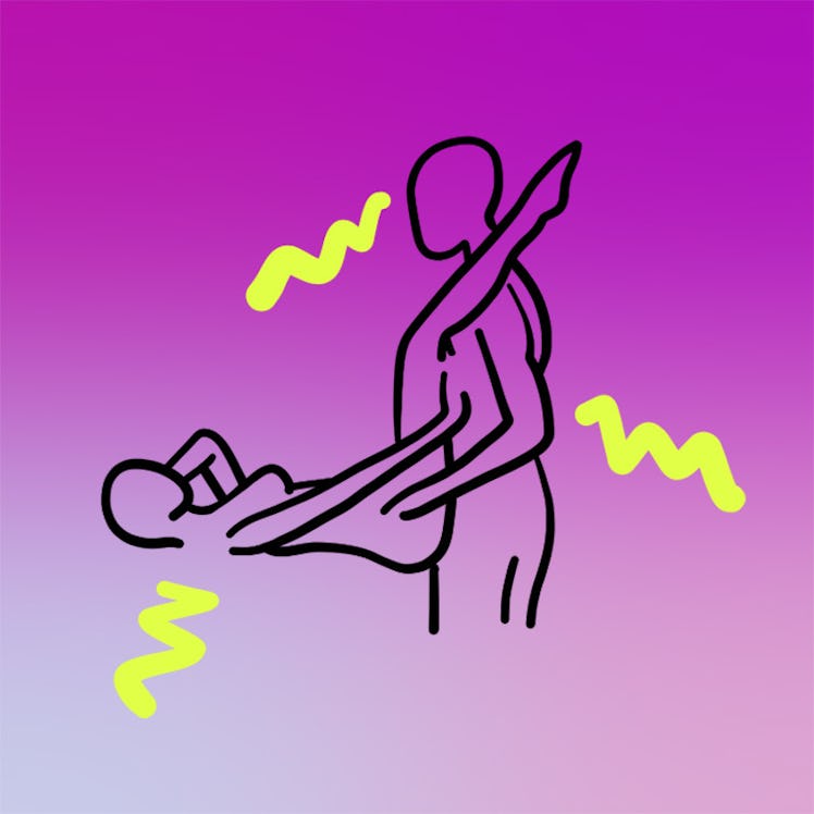 You rest on the bed while your parter puts your legs over his head. Your guy can even physically stretch your legs by pushing them toward your body, you know, should you actually want your sex session to double as a massage and physical therapy. While this might not burn the most calories, stretching is a huge part of physical fitness and staying limber.